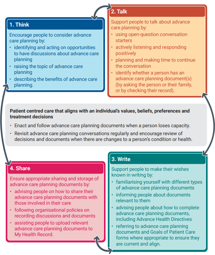 • All health professionals have an important role in supporting and promoting advance care planning.