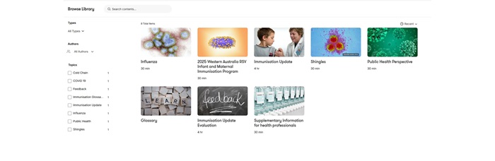 The online education modules have been developed by the Communicable Disease Control Directorate (CDCD), WA Department of Health. For WA Health immunisation providers working under the CEO of Health SASA, the modules are compulsory learning prior to administering.